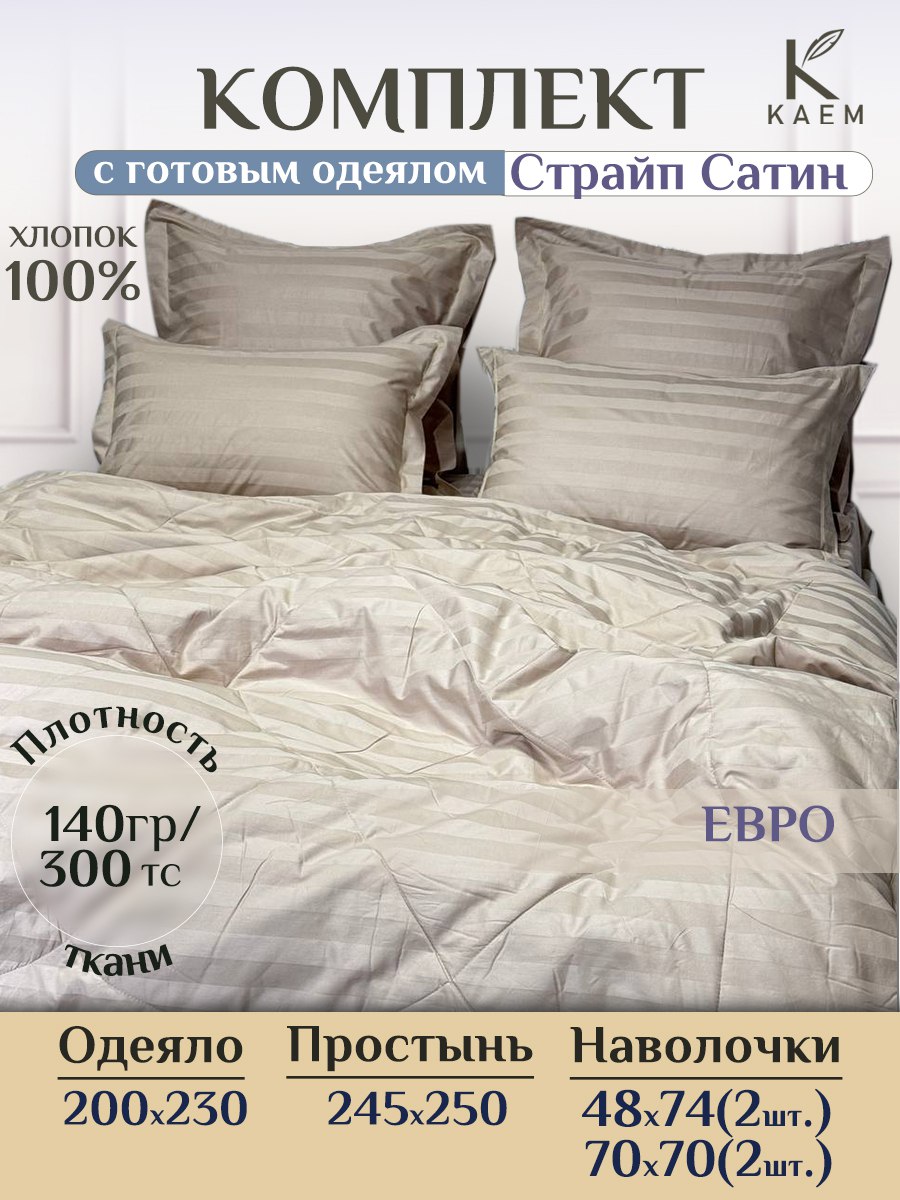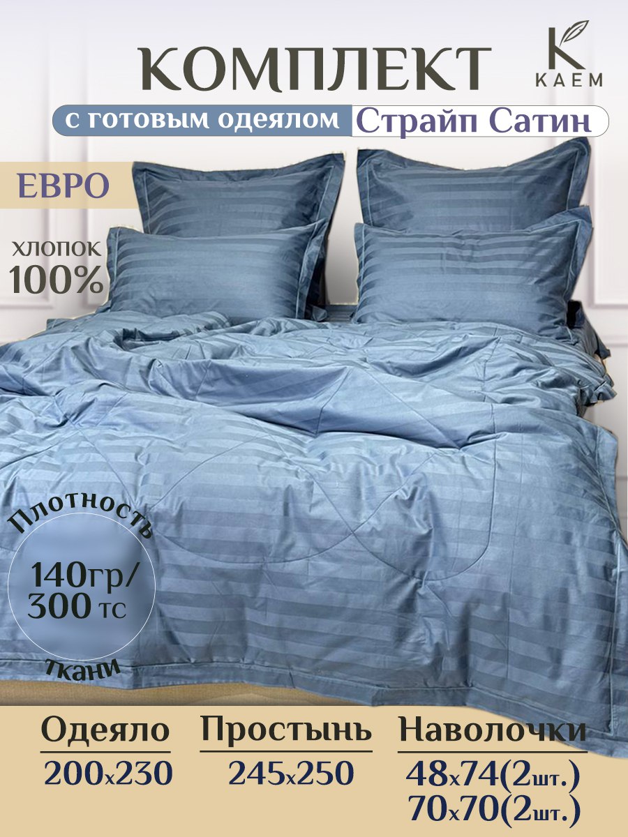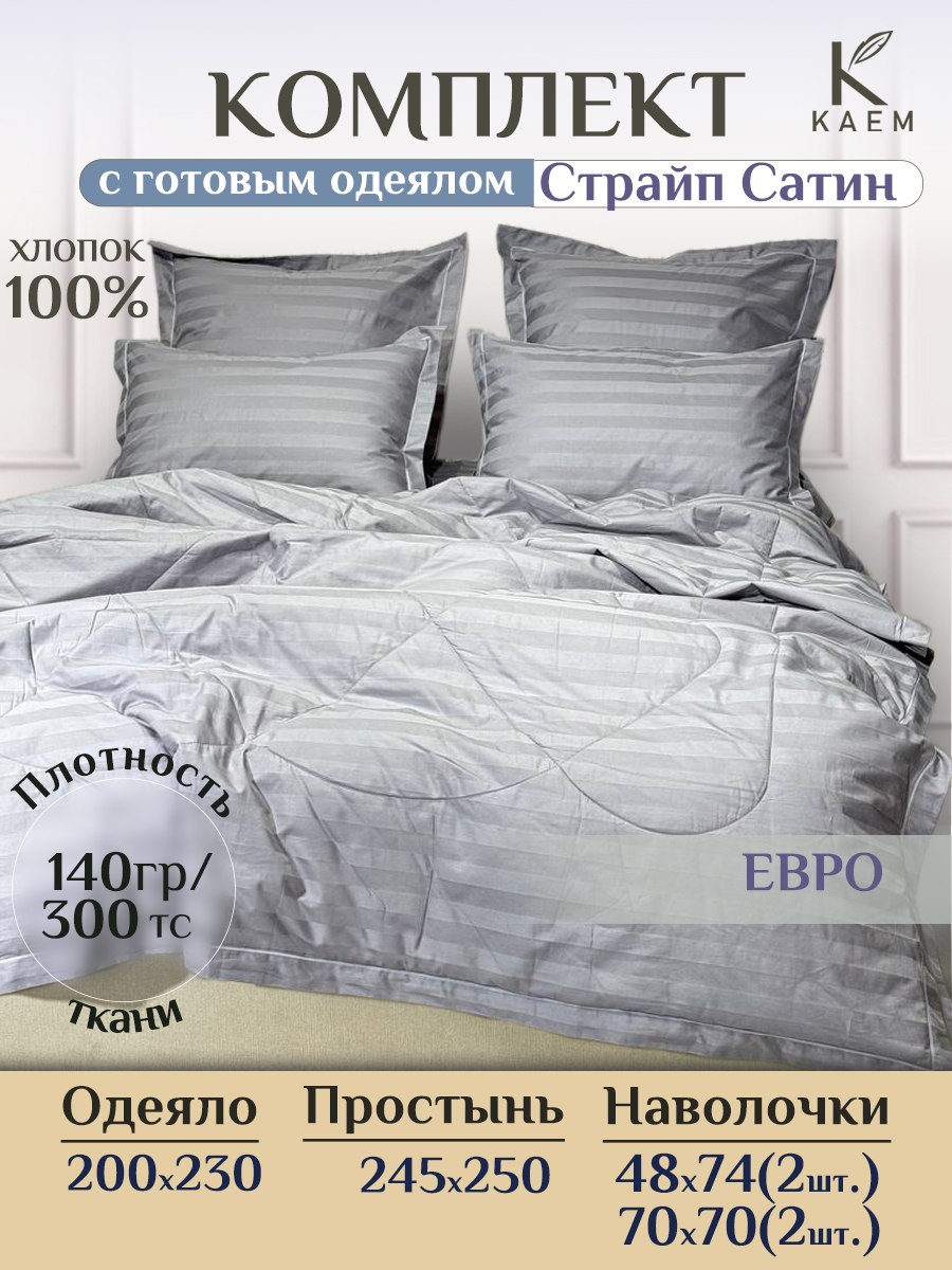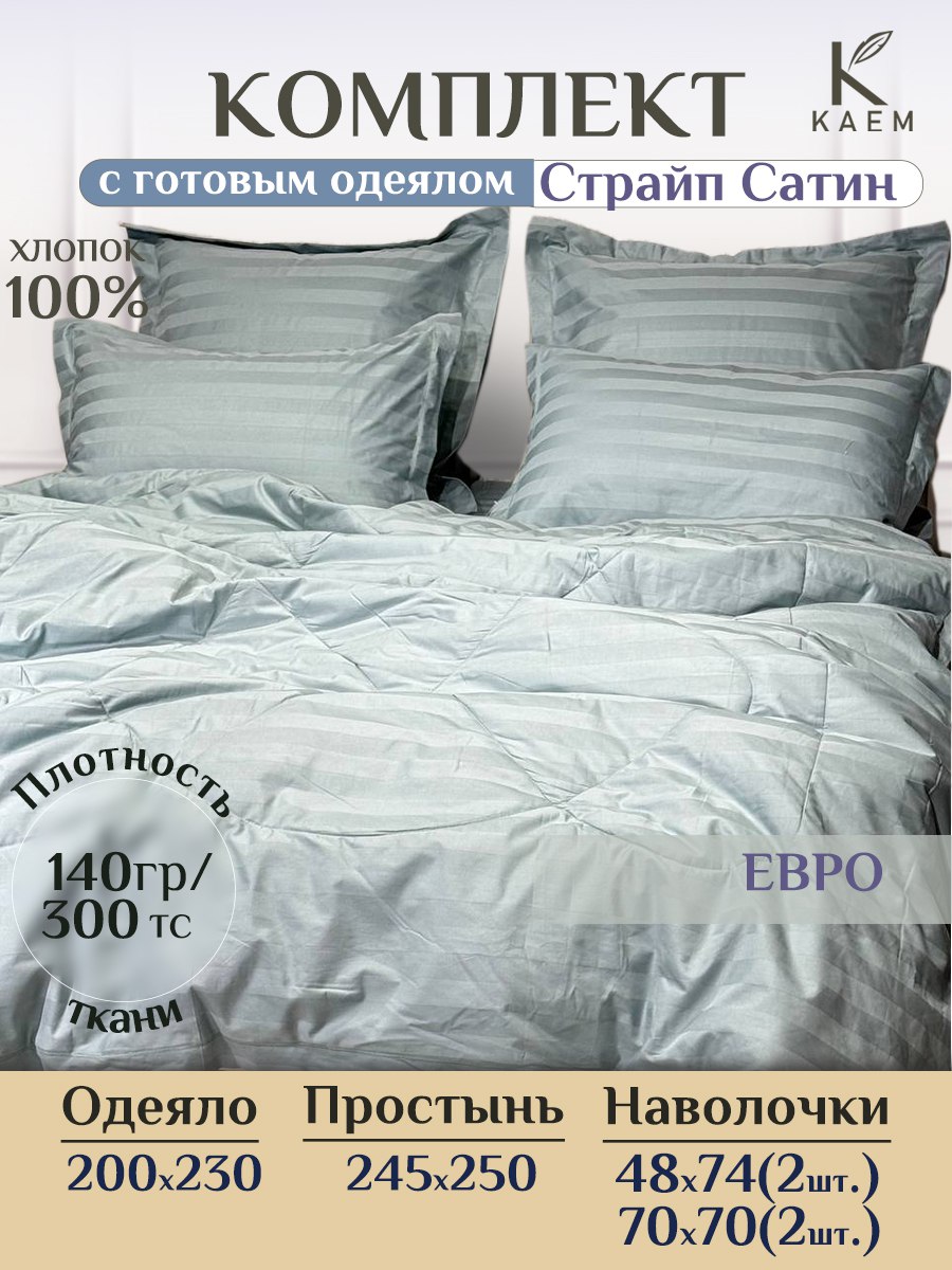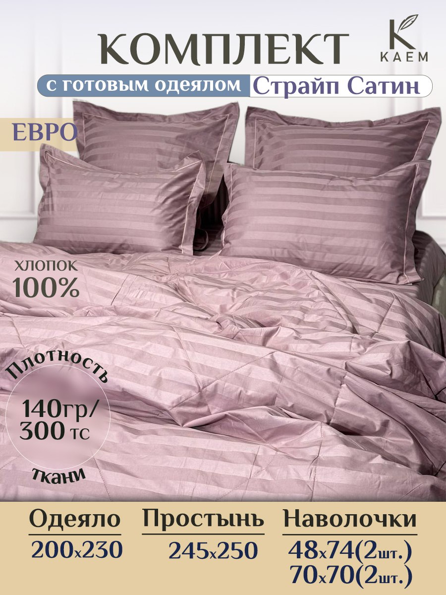 Комплект постельного белья с готовым одеялом Avrora люкс страйп-сатин 200/230