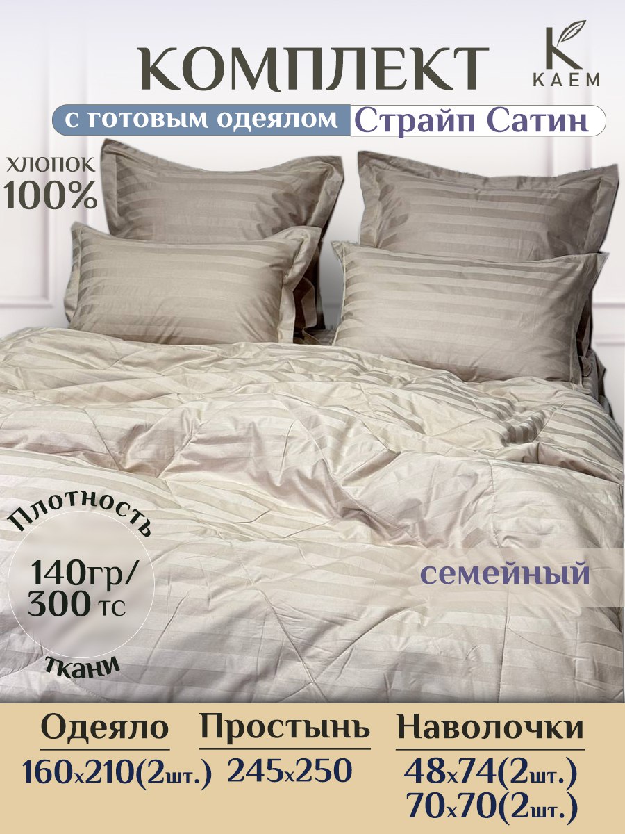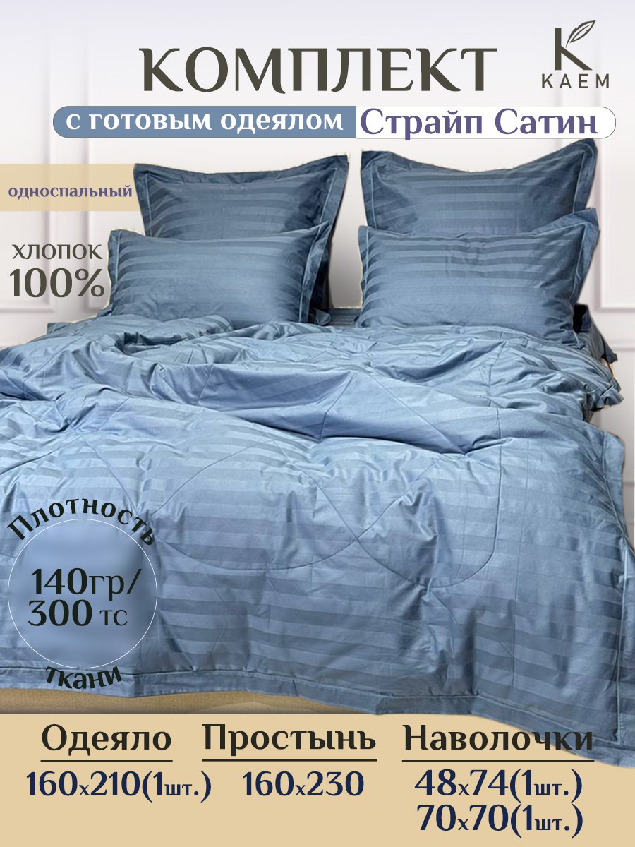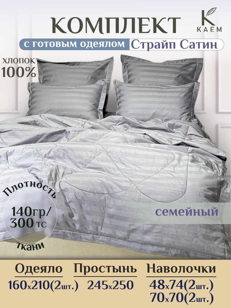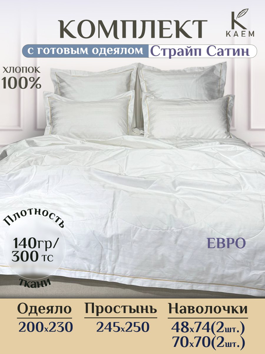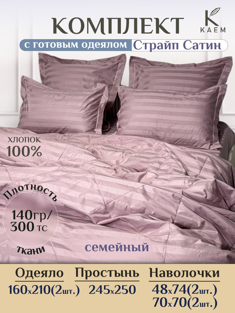 Комплект постельного белья с готовым одеялом Avrora люкс страйп-сатин 200/230