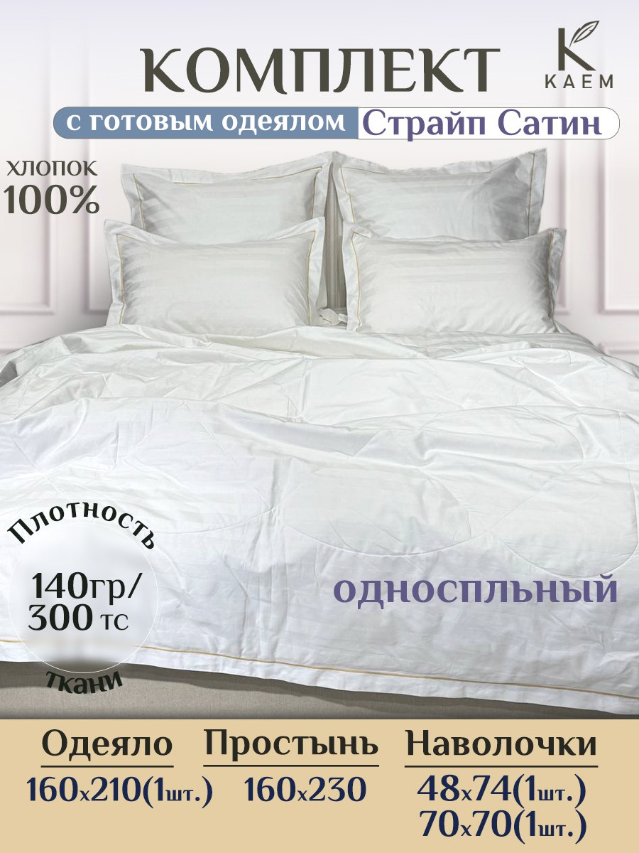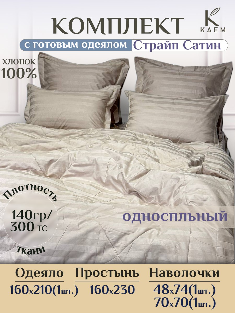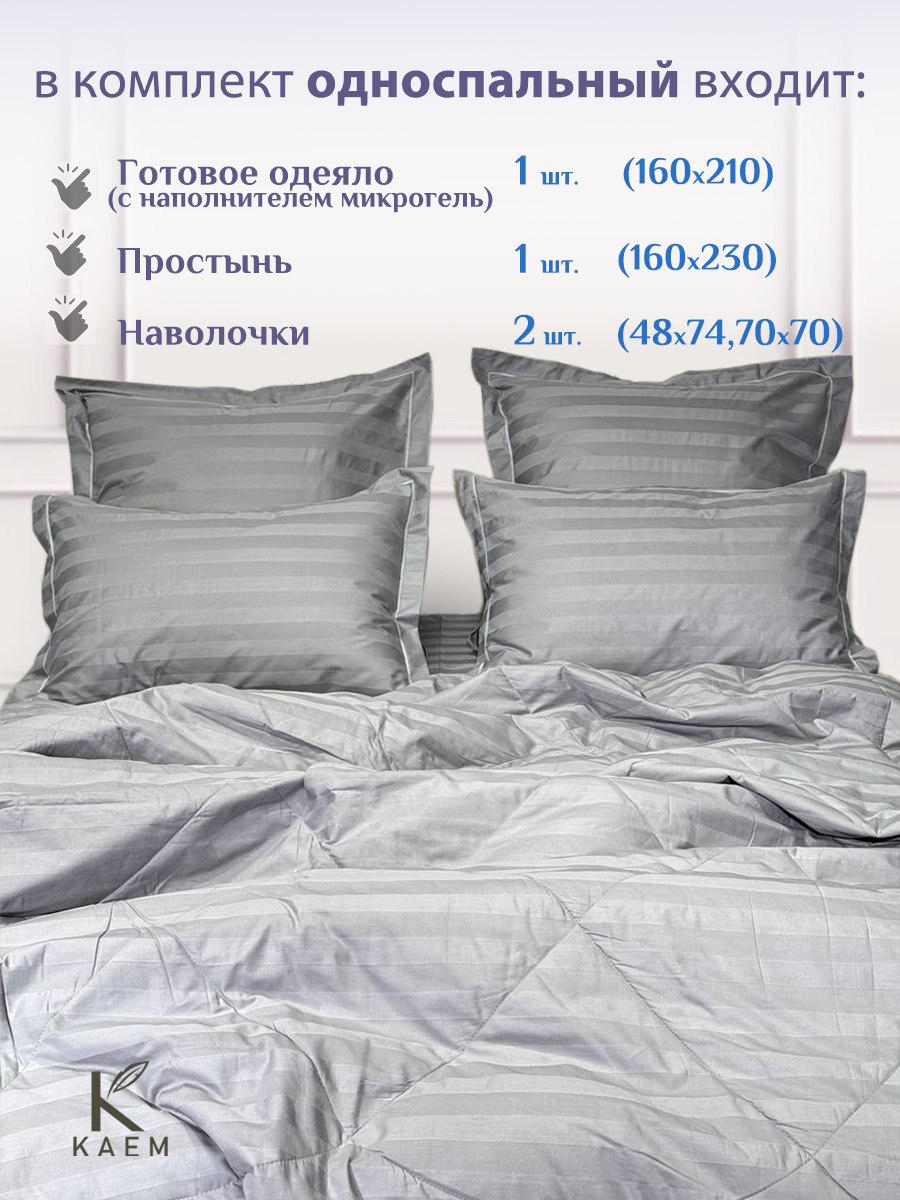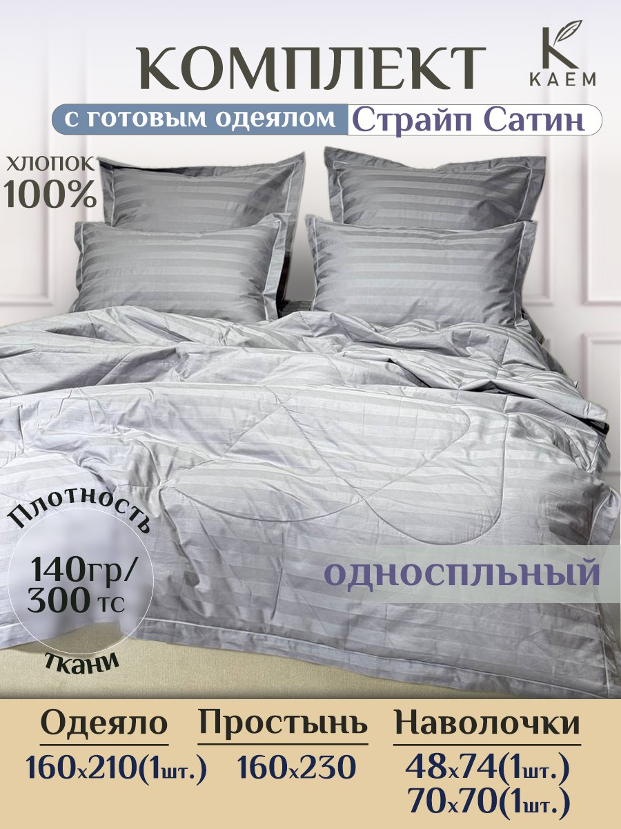 Комплект постельного белья с готовым одеялом Avrora люкс страйп-сатин 160/210-2